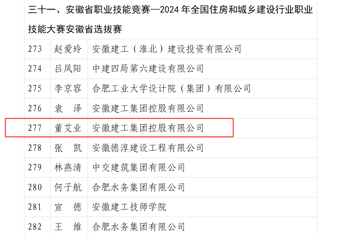 近日,公司鋼筋工董艾業(yè)代表安徽建工集團(tuán)參加2024年全國(guó)住房和城鄉(xiāng)建設(shè)行業(yè)職業(yè)技能大賽安徽省選拔賽,并憑借扎實(shí)的專業(yè)功底與精湛技藝,榮獲 “安徽省技術(shù)能手” 稱號(hào)。該榮譽(yù)不僅是董艾業(yè)個(gè)人職業(yè)生涯的高光時(shí)刻,更是公司在產(chǎn)業(yè)工人技能培育領(lǐng)域長(zhǎng)期耕耘的有力見證。